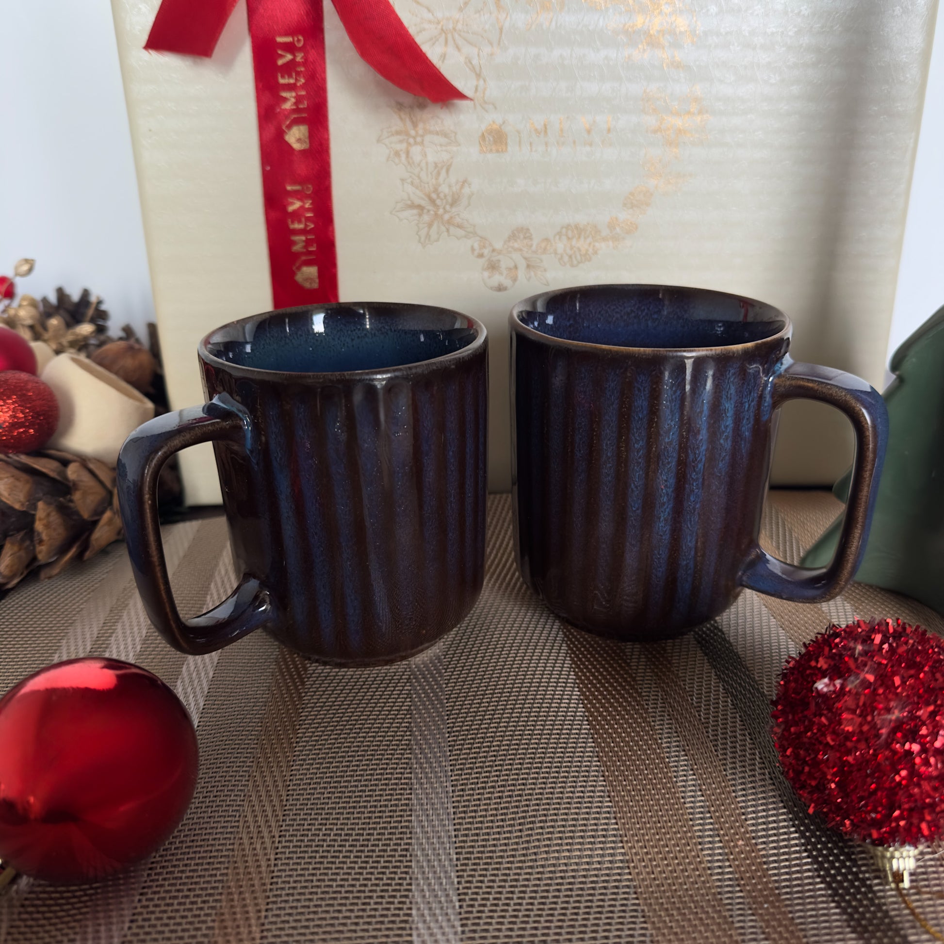 Add a touch of quiet elegance to your winter moments with the Celestia Holiday Gift Set — a thoughtfully curated Christmas ensemble inspired by deep winter skies, calm evenings, and mindful rituals. Featuring two beautifully crafted ribbed ceramic mugs in rich midnight blue tones with a subtle glossy finish, paired with the sculptural Holly Pine Candle Holder and a Roman Ribbed Pillar Candle, this set is perfect for cosy coffee breaks, evening teas, or intimate festive gatherings.