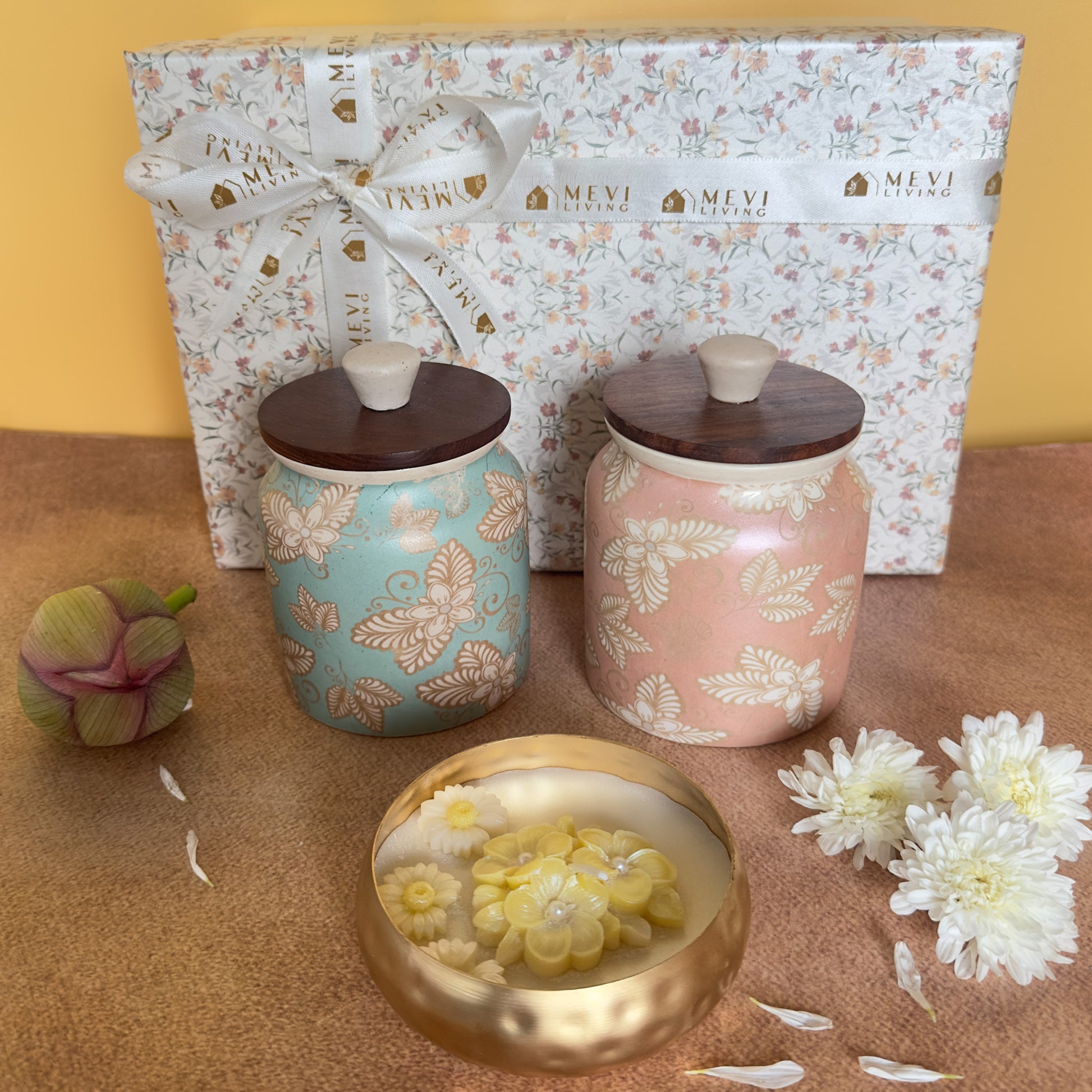 Eden Bloom Jars + Petal Glow Urli Candle Gift Set