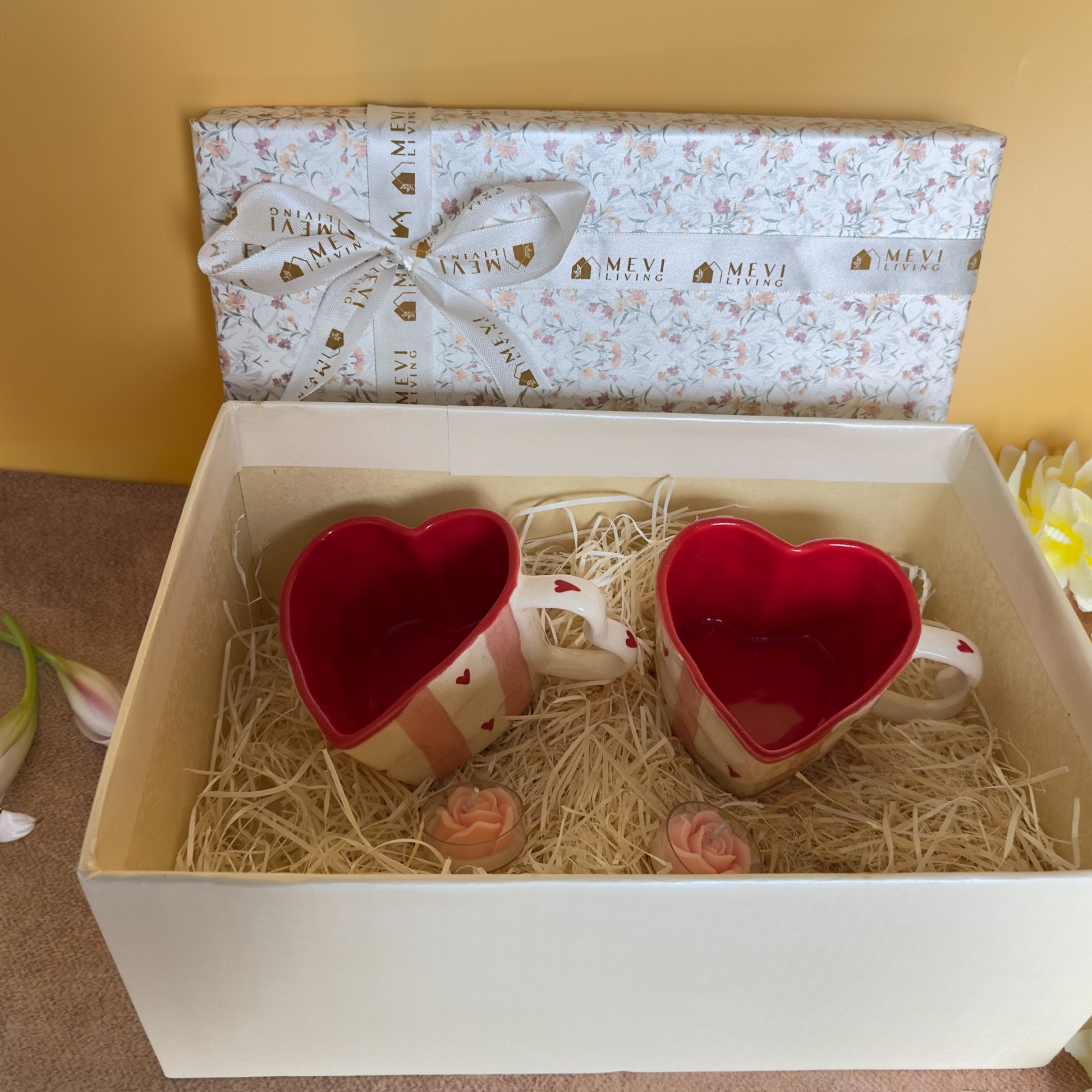 Celebrate love and joy with the Heartlet Confetti Cuppa Bliss Gift Set—a hamper that’s as cheerful as it is elegant. This set features two handcrafted heart-shaped ceramic mugs with a vibrant red interior and playful confetti-inspired detailing on the outside. Perfect for coffee, tea, or hot chocolate, these mugs turn every sip into a little celebration.
