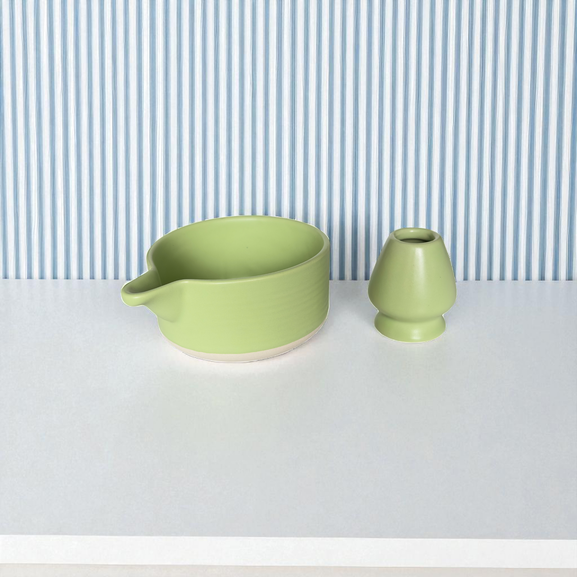 Embrace the ritual of tea-making with the timeless elegance of our Zen Matcha Bowl Set. Featuring a classic ceramic bowl paired with a sleek whisk holder, this set is crafted to bring balance and beauty to every cup of matcha.